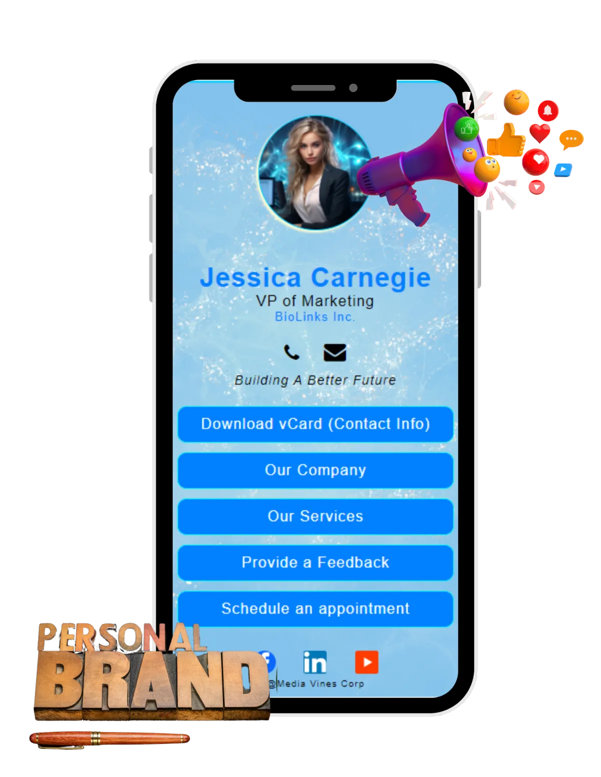 A BioLink is a centralized mini-webpage that compiles your various online profiles, links, and information into one easily shareable link.